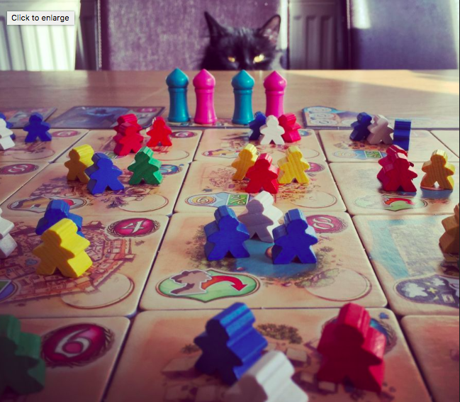 Ocurre que los juegos de mesa son generadores de imágenes y se relacionan directamente con ellas. El tablero, las cartas, los meeples, los colores, el diseño, todo tiene una carga visual potente sobre la que nos zambullimos constantemente. Sobre todo si eres de los que buscan a su alrededor información, de los que ven fotografías, de los que escuchan podcast y ven vídeos y ejemplos de juegos. Supongo que hasta cierto punto es normal que después de ver mil veces las imágenes de un juego, de escuchar a tu alrededor a la gente hablar y jugar a ese juego, acabes por dejar penetrar esas imágenes en tu cabeza.